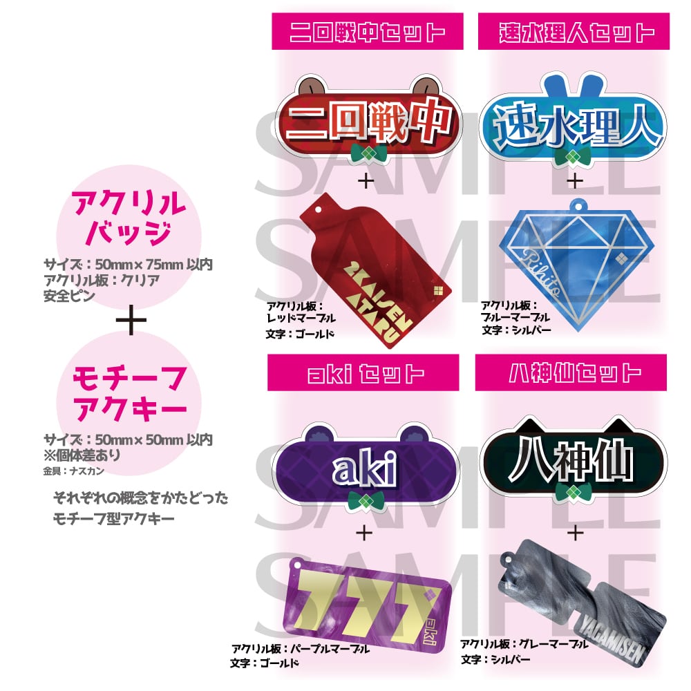 お名前アクリルバッジと、それぞれをイメージしたモチーフアクキーのセットです!